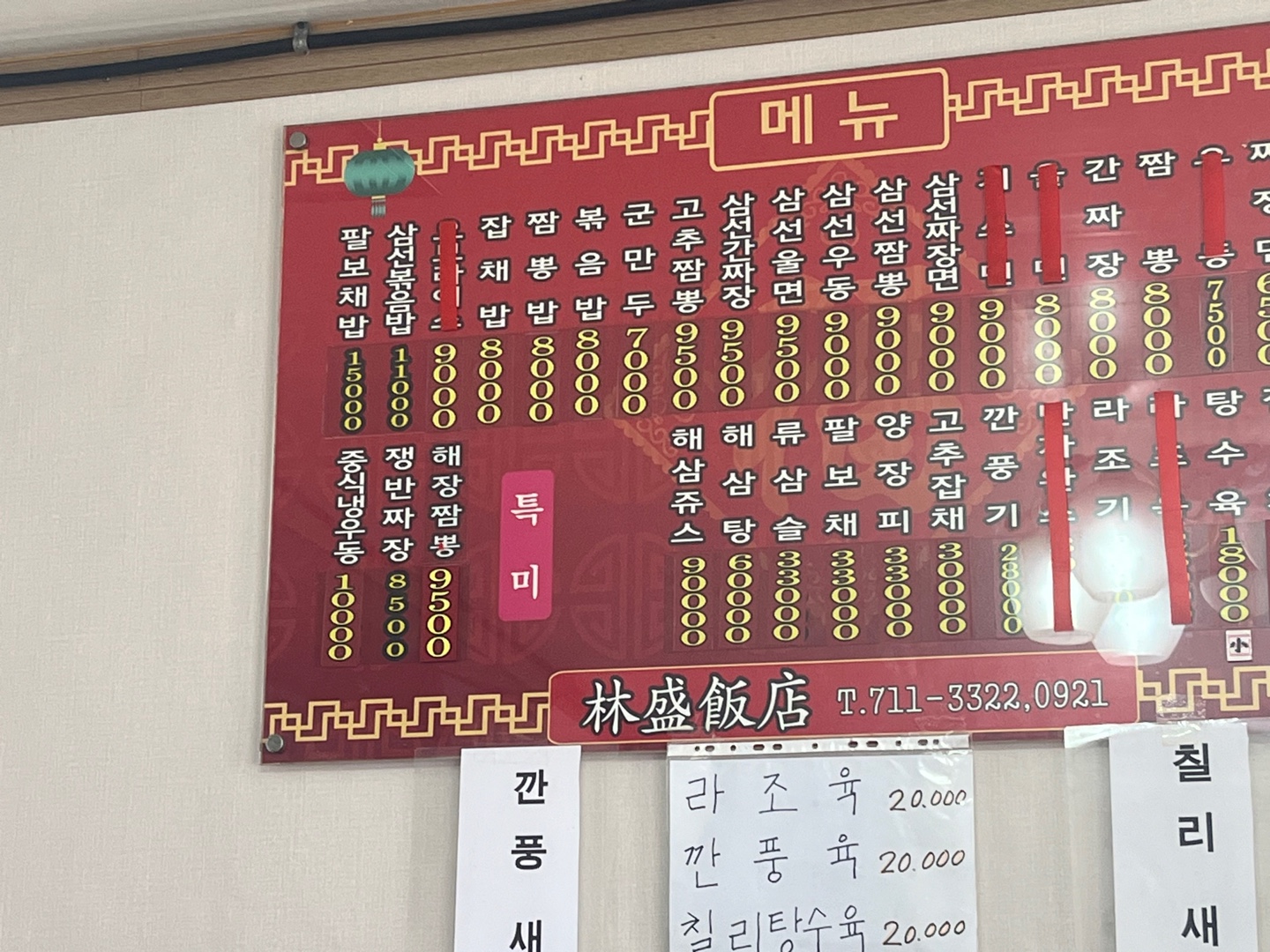메뉴는 어느 중화요리 식당과 마찬가지로 다양한 편이고, 임성반점의 유명한 메뉴는 바로 '고추짬뽕'이라고 합니다.